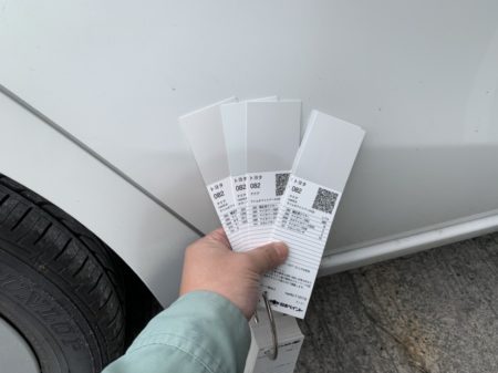 一番近い色のカードを選び、記載通りに塗料を混ぜます。