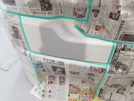 次はほかの場所に飛ばないように養生(マスキング)をしてサフェーサーという下地塗料を塗装します。