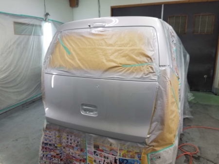 バックドア、リアバンパーはリサイクル部品を使ってきれいに塗装しなおして