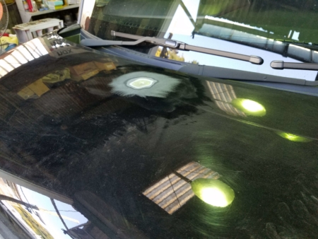 台風で物が飛んできたみたいでボンネットにキズが付いてへこんでしまっていました。