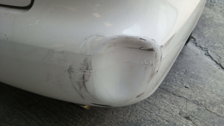 後ろのバンパーが凹んで変形してしまってます。