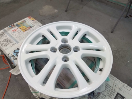 調色をしてから塗装します。アルミホイールもクリアコートをかけます。