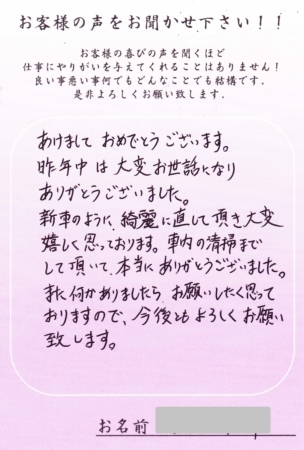 〈新車のように綺麗に直していただき大変嬉しく思っております。〉