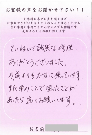 自費修理でしたのでできるだけ安く、きれいに直る修理方法を提案させていただきました。