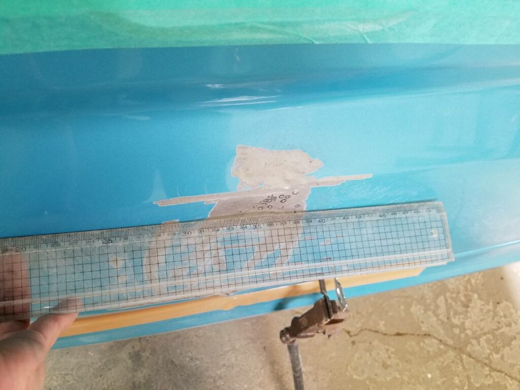 ▼表面にできた凹凸を埋めるためにパテを塗り、乾燥させます。