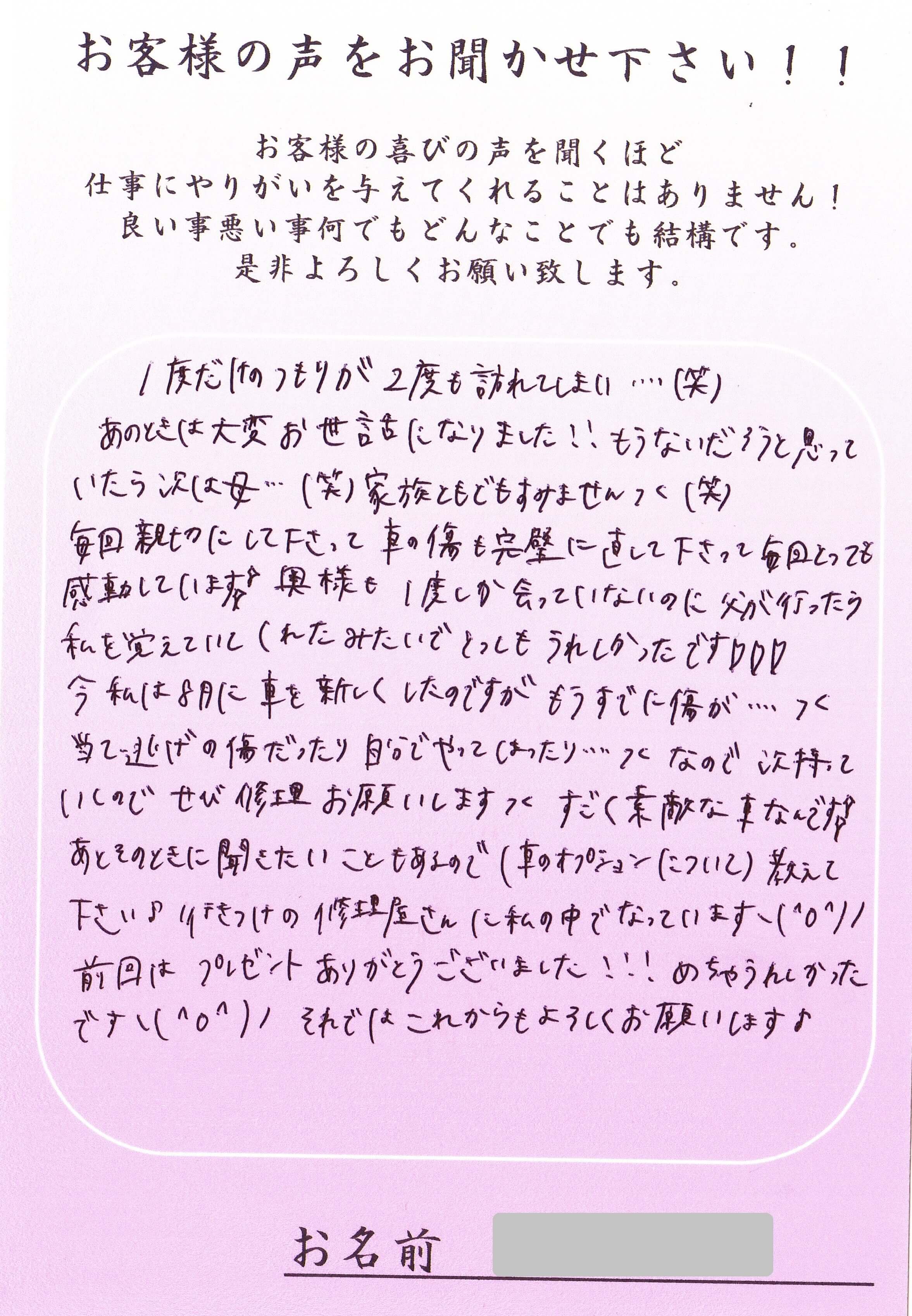 〈車の傷も完璧に直して下さって毎回とっても感動しています。〉
