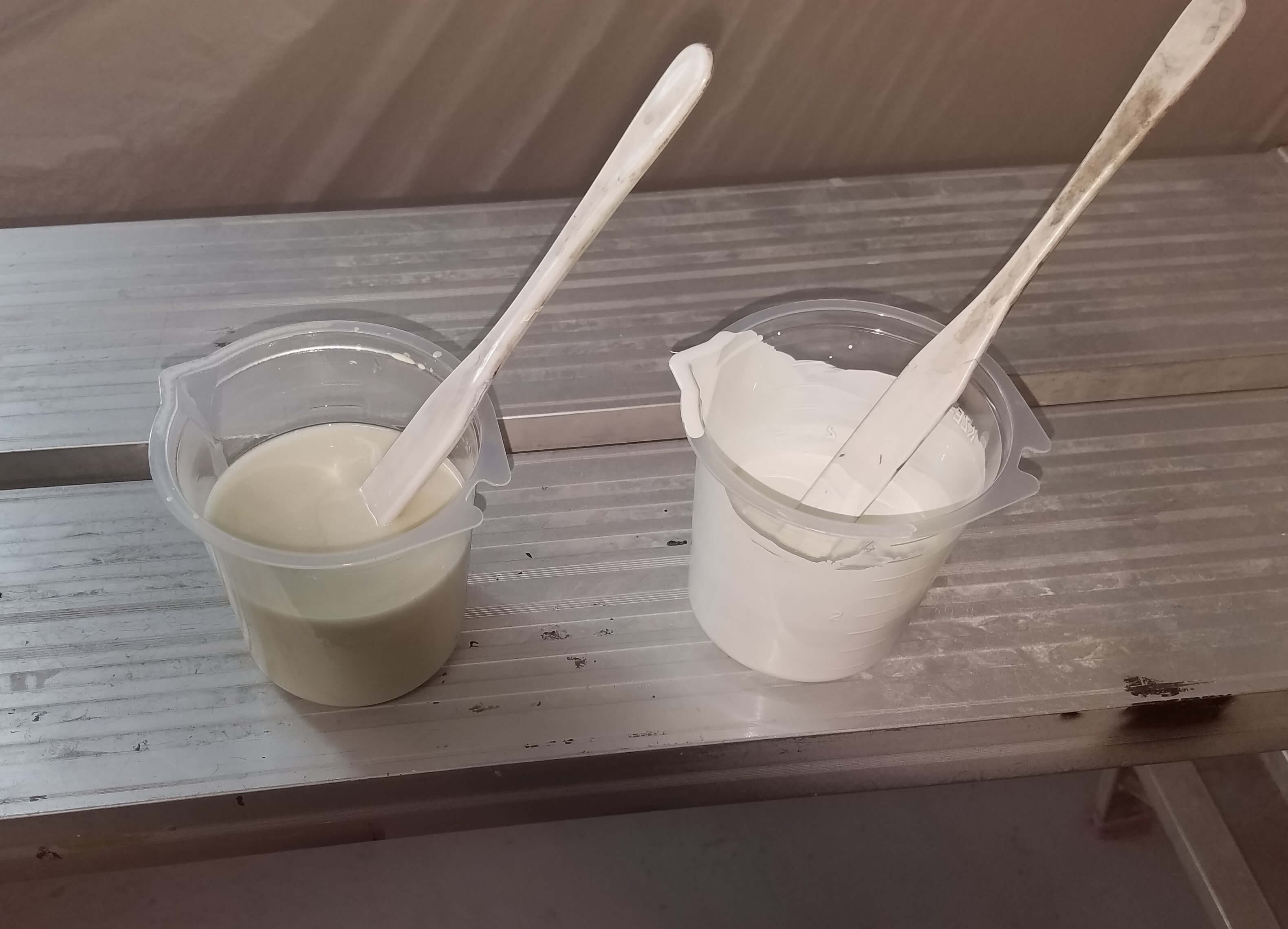 スリーコートパールはカラーベース(写真右)とパールベース(写真左)の2種類の塗料を作ります。