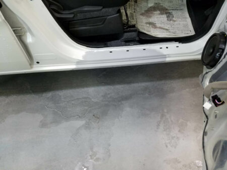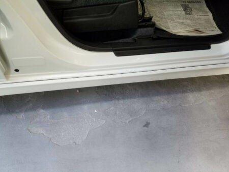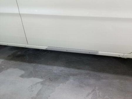 赤外線ヒーターで乾燥させたあと、新品のサイドステップガーニッシュを取り付けました。