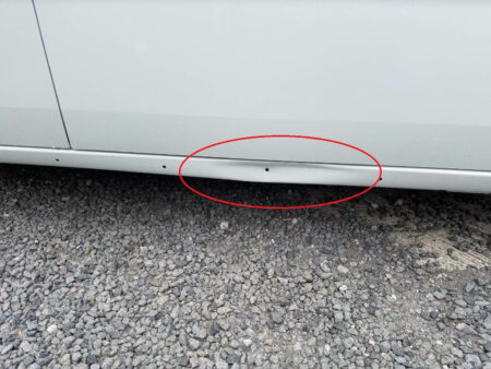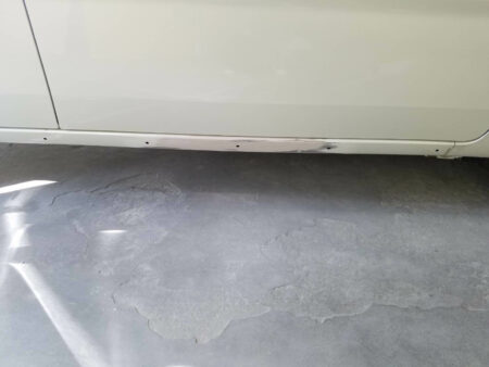 ▼サイドステップを上から見た様子です。こちらは鈑金で修正していきます。