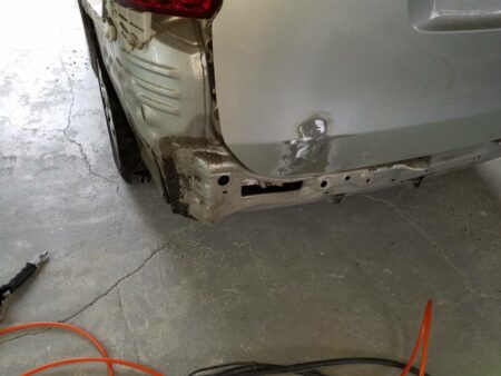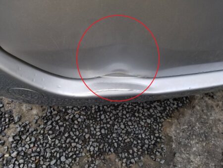 さらにバンパーの方もぶつかった衝撃で凹んでいます。