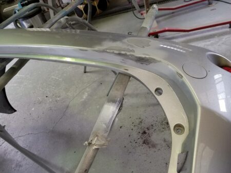 ▼ バンパーは取り外して単体で修理及び塗装を行っていきます。