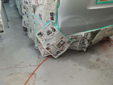 その際には塗料がかかってはマズイ部分を新聞紙などでマスキングを行ってから塗装を始めます。