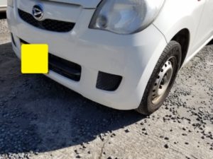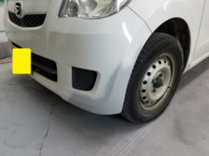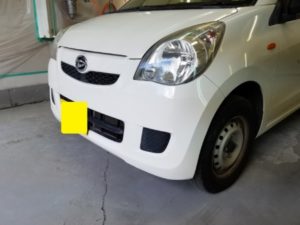 鹿児島市のS様よりミラの前バンパーをぶつけてしまったので直してほしいと依頼されました。