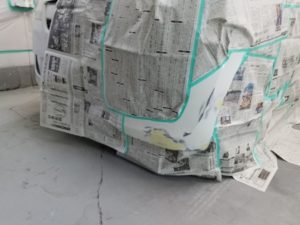 パテをまた削り、キズが埋まったら他の場所に塗装が飛ばないように