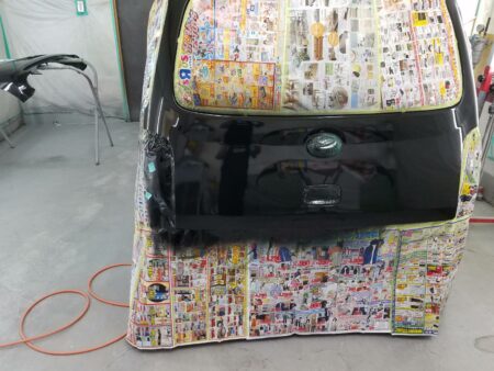 その際には塗料がかかってはマズイ部分を新聞紙などでマスキングを行ってから塗装を始めます。