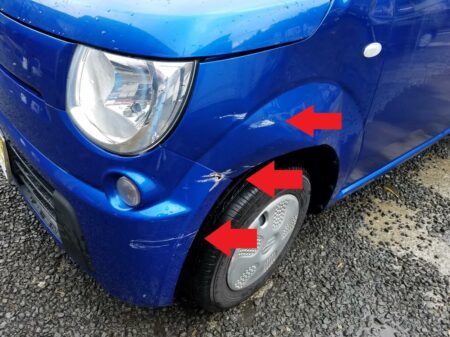 自分でぶつけてしまわれたそうです。車両保険に加入されていないため、自費修理にするので安く修理したいとの事です。